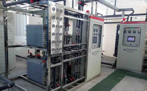 為滿足用戶需要,達到符合標準的水質,盡可能地減少各級的污染,延長設備的使用壽命、降低操作人員的維護工作量.在工藝設計上,取達國家自來水標準的水為源水,再設有介質過濾器,活性碳過濾器,鈉離子軟化器、精密過濾器等預處理系統、RO反滲透主機系統、離子交換混床(EDI電除鹽系統)系統等。 系統中水箱均設有液位控制系統、水泵均設有壓力保護裝置、在線水質檢測控制儀表、電氣采用PLC可編程控制器,真正做到了無人職守,同時在工藝選材上采用推薦和客戶要求相統一的方法,使設備與其它同類產品相比較,具有更高的性價比和設備可靠性。