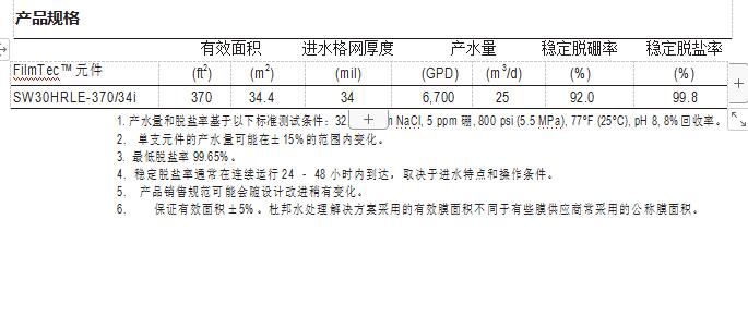 FilmTec™ SW30HRLE-370/34i 膜元件有以下優(yōu)點: