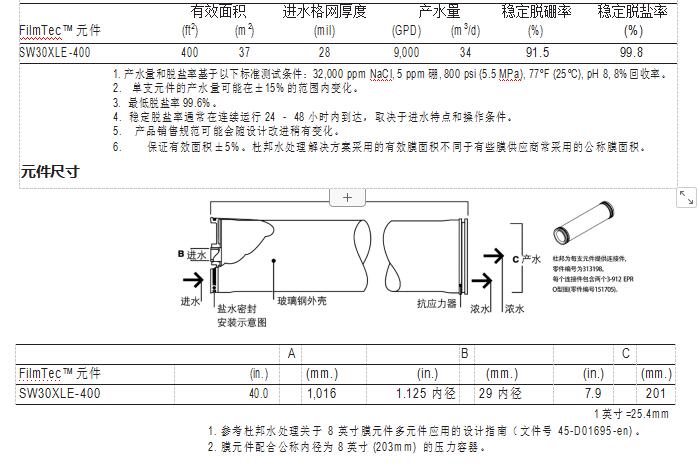 FilmTec™ SW30XLE-400 元件有以下優點 :