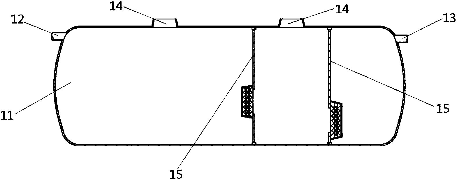 1.一種格柵井,其特征在于,包括筒體(11),所述筒體(11)上設置有進口(12)、出口(13)和清掏口(14);