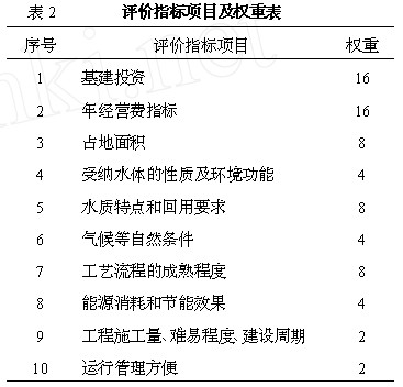 例如確定某城市污水處理廠工藝流程時采用了表2 所示的評價指標及權重: