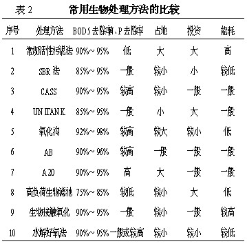 定性比較時可以采用有定論的結論和經驗值等, 而不必進行詳細計算。幾種常用生物處理方法的比較見表1。