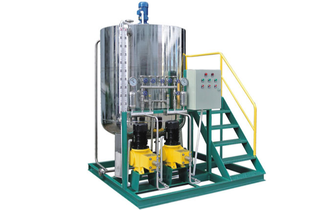阻垢劑加藥裝置主要包括藥液溶配系統(tǒng)、計量投加系統(tǒng)、安全系統(tǒng)和控制系統(tǒng)等四部分。