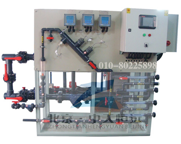 示蹤劑加藥裝置由示蹤劑儀表、PH儀表、0RP儀表、電導(dǎo)率儀表、控制系統(tǒng)、無線遠(yuǎn)傳系統(tǒng)等部分組成。其工作原理是由示蹤劑儀表檢測循環(huán)水系統(tǒng)中藥劑的濃度,進(jìn)行PID運(yùn)算,然后自控制系統(tǒng)啟動或關(guān)閉加藥泵往循環(huán)水系統(tǒng)添加藥劑。其功能是使藥劑穩(wěn)定在一定的濃度范圍,達(dá)到保護(hù)管道不會結(jié)垢或腐蝕的趨勢。循環(huán)水系統(tǒng)進(jìn)行排污或補(bǔ)水時,只要藥劑濃度滿足設(shè)定值,加藥泵依然不向系統(tǒng)中投加藥劑。從而節(jié)約客戶使用藥劑的成本。