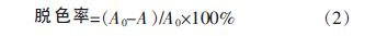 甲基橙濃度采用分光光度法,在465 nm 波長(zhǎng)下測(cè)定,脫色率按式(2)進(jìn)行計(jì)算:
