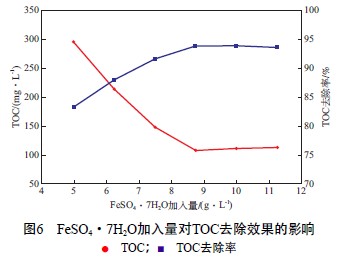 2.2.4 FeSO4·7H2O加入量對TOC去除效果的影響