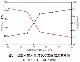 2.2.3雙氧水加入量對TOC去除效果的影響