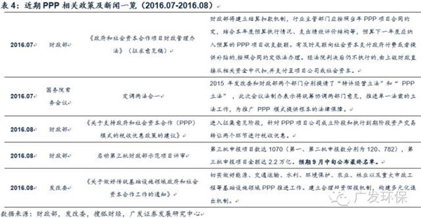 各方政策持續加碼,PPP落地預期加速。政策扶持PPP的力度仍在加強,近期國務院常務會議聚焦PPP,并推動財政部和發改委兩部并行推進的法律合二為一,為推廣PPP模式提供根本的法律保障�!禤PP項目財政管理辦法》也已進入征求意見階段,提出地方政府不履約時的扣款機制和將PPP支出納入預算管理,以期解決在推動PPP發展中遇到的政府信用問題。財政部第三批示范項目已進入評審階段,預期9月上旬公布比較終名單。政策加碼背景下,預期PPP落地將進一步加快,反映在上市公司訂單持續增長、業績兌現確定性不斷提高。