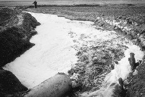近些年來,由于黃河流域工業(yè)化進程加快,城市化功能不斷擴大,地區(qū)性中小企業(yè)迅猛發(fā)展,大量工業(yè)污水、生活污水直接或間接排入黃河。2月初,記者沿黃河鄭州花園口河段西進,經三門峽、潼關、渭南至西安,又沿渭河向東折回,行程1300多公里,目睹了黃河中下游重點干、支流水質、水環(huán)境污染的狀況。