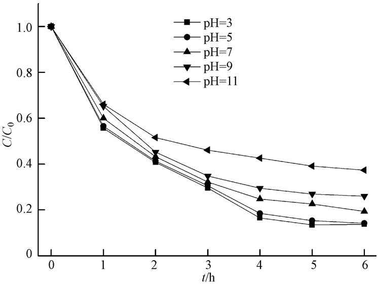 圖1 pH對PS氧化印染RO濃水中有機物去除效果的影響