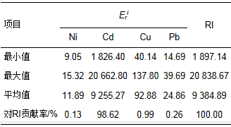 表 4 沉積物中重金屬潛在生態(tài)風險