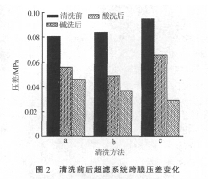 2.2清洗前后超濾系統跨膜壓差變化