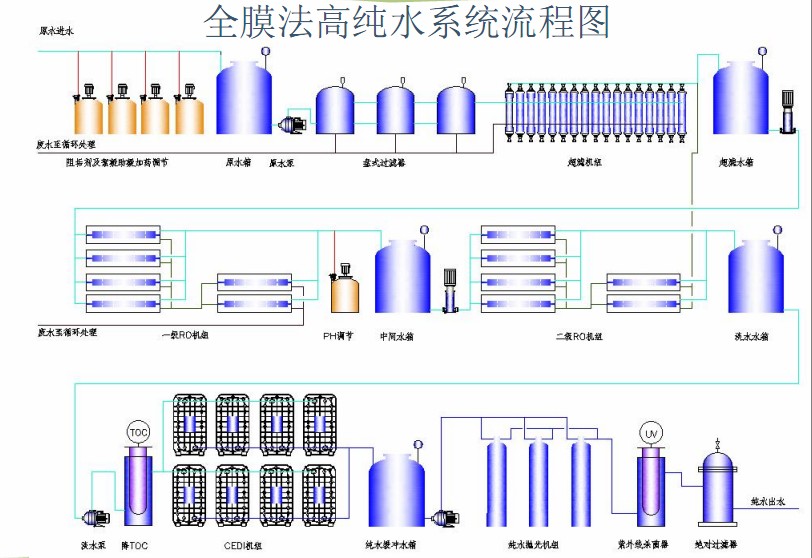 1、系統(tǒng)模塊化設(shè)計(jì),共分四部分:預(yù)處理系統(tǒng)、反滲透系統(tǒng)、EDI系統(tǒng)、終端供水系統(tǒng)。
