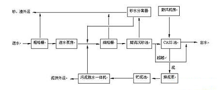 技術(shù)特點與優(yōu)勢: ● 投資費用低 改良型氧化溝工藝采用微孔曝氣(或大功率機械曝氣)與機械推流方式配合運行,可以使氧化溝設(shè)計有效水深達到 5.0米以上,占地面積大幅減小,投資費用大幅降低。 ● 運行費用低 改良型氧化溝工藝采用高效曝氣方式,工藝根據(jù)進水水質(zhì)地不同可調(diào)節(jié)回流污泥分配,可大幅節(jié)省設(shè)備運行費用,從而降低運行費用。 ● 運行管理方便 改良型氧化溝工藝成熟,運行穩(wěn)定,常規(guī)管理方便。 CASS 工藝 CASS(Cyclic Activated S1udge System) 工藝是普通 SBR 工藝的一種改進型工藝。 CASS 反應(yīng)池由預反應(yīng)區(qū)和主反應(yīng)區(qū)組成,預反應(yīng)區(qū)控制在缺氧狀態(tài),因此,提高了對難降解有機物的去除效果提高。 CASS 進水是連續(xù)的,因此進水管道上 無電動控制閥 ,單個池子可獨立運行 。 CASS 工藝可以根據(jù)脫氮除磷效果的要求,將預反應(yīng)區(qū)分成厭氧、缺氧兩段。在工藝運行過程中,可根據(jù)實際污泥性狀和除磷要求選擇回流裝置的開啟。 CASS 工藝處理流程簡圖如下: ![]()