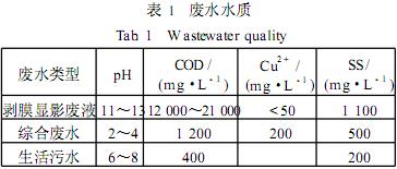 廣東省某印刷電路板廠在生產(chǎn)過程中排放的廢水種類復(fù)雜,根據(jù)水質(zhì)特點(diǎn)進(jìn)行分類收集,廢水水量為:剝膜顯影廢液為150m3/d,生活污水量為300m3/d,綜合廢水量為1500m3/d。廢水水質(zhì)見表1。