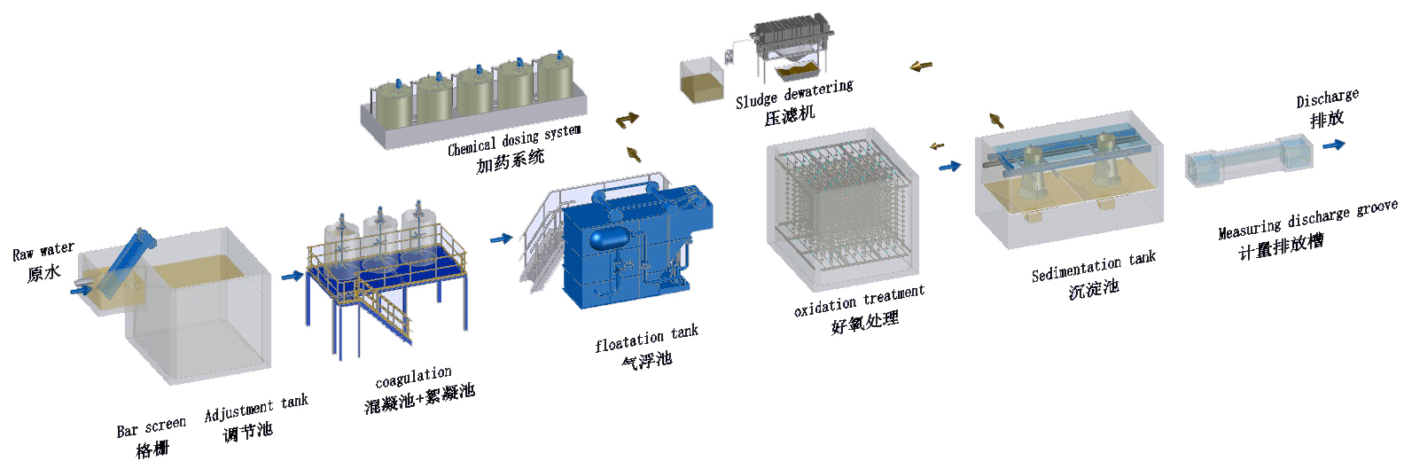 2.部分可溶性油脂也會引起生物系統(tǒng)中毒,采用混凝氣浮工藝進行分離。